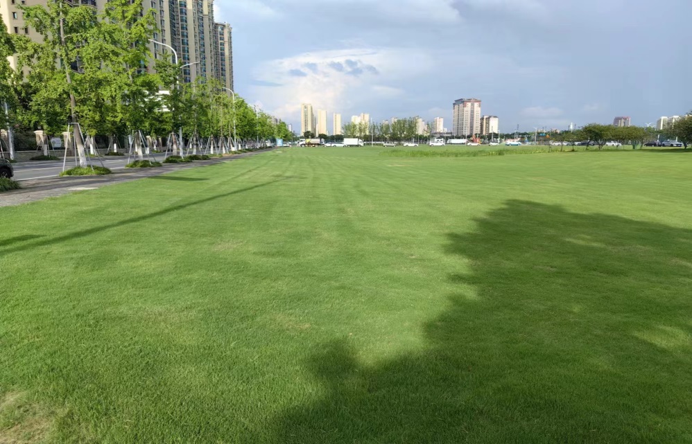 增加灌溉“保綠”,科學(xué)澆水潤(rùn)綠地。采取定時(shí)、定責(zé)、定地塊的工作方法,用水泵抽灌的方式進(jìn)行澆水。澆水時(shí)間控制在上午9點(diǎn)之前和下午4點(diǎn)以后,最大限度減少水分蒸發(fā),及時(shí)供給草坪所需水分。