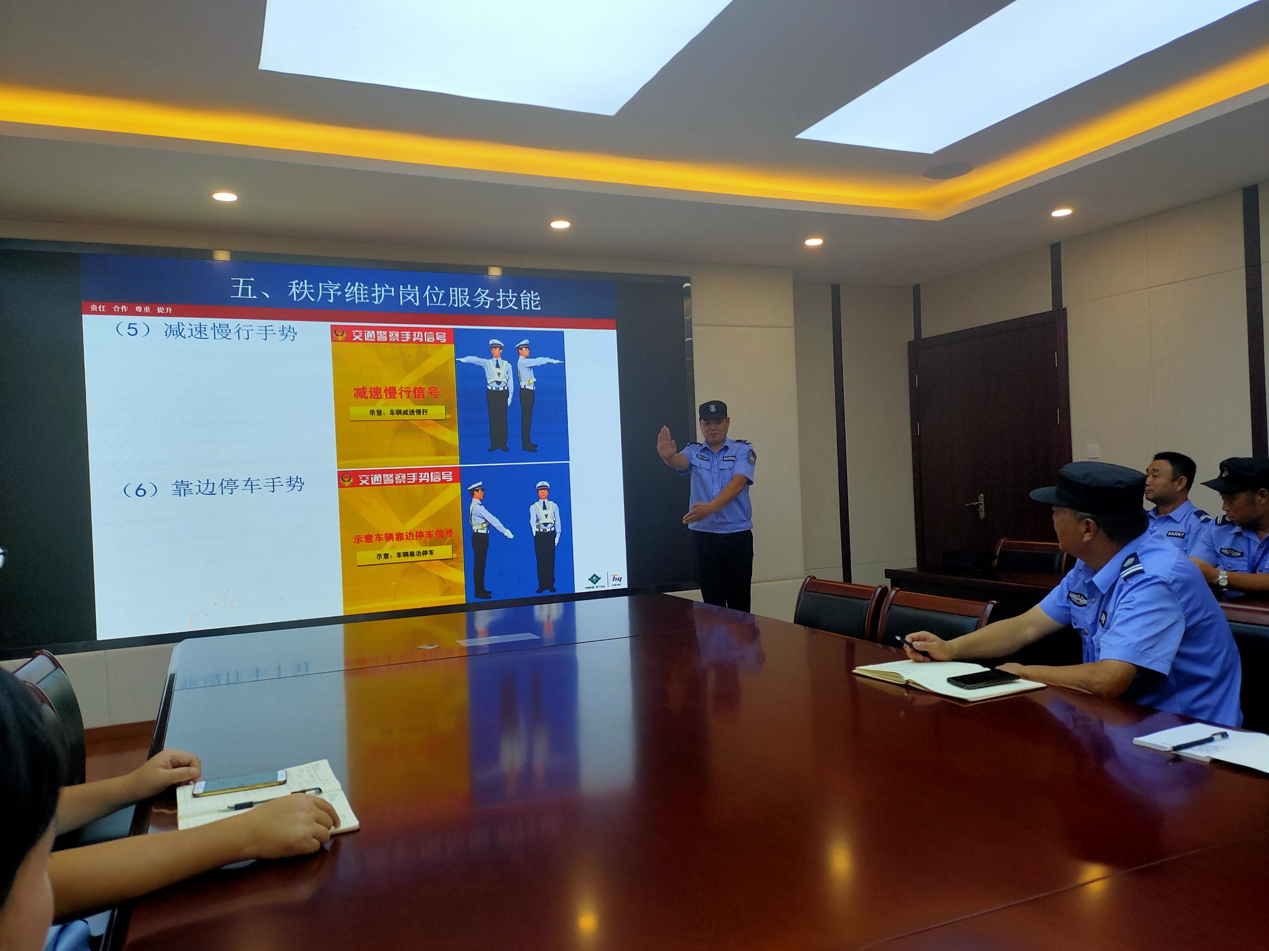 此次培訓(xùn)主要講解了道路交通法律法規(guī)、交通標(biāo)識標(biāo)線、交通事故認定知識以及如何正確文明行車。根據(jù)保安人員崗位職能特點,結(jié)合校園周邊交通現(xiàn)狀及交通陋習(xí)等方面,教授安保人員如何做好一名校園交通安全宣傳員、引導(dǎo)學(xué)校學(xué)生安全上下學(xué)、應(yīng)急處理校園周邊交通事故等。 隨后介紹了常用的交通指揮手勢,講解指揮手勢的動作要領(lǐng)及含義。