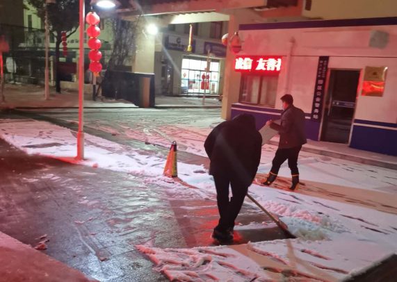 在園區(qū)公舍防疫值守的李佃左說道:雖說疫情來了,但大家伙的心是牢牢團(tuán)結(jié)在一起的,這不一看下雪了,擔(dān)心復(fù)工人員上班時的出行安危,大家伙都忙活起來啦!當(dāng)晚,建發(fā)公司員工、園區(qū)環(huán)衛(wèi)人員“相約”在轄區(qū)內(nèi)及園區(qū)道路街頭,在嚴(yán)寒中默默堅守,與冰雪爭分奪秒,你鏟我掃、撒布融雪劑,井然有序,從容不亂,大家齊心協(xié)力、配合默契,為保障轄區(qū)內(nèi)通暢竭盡全力。在掃雪除冰的同時,園區(qū)公舍集宿區(qū)工作人員仍然堅守在執(zhí)勤點執(zhí)勤防控,有序做好各項疫情防控工作。