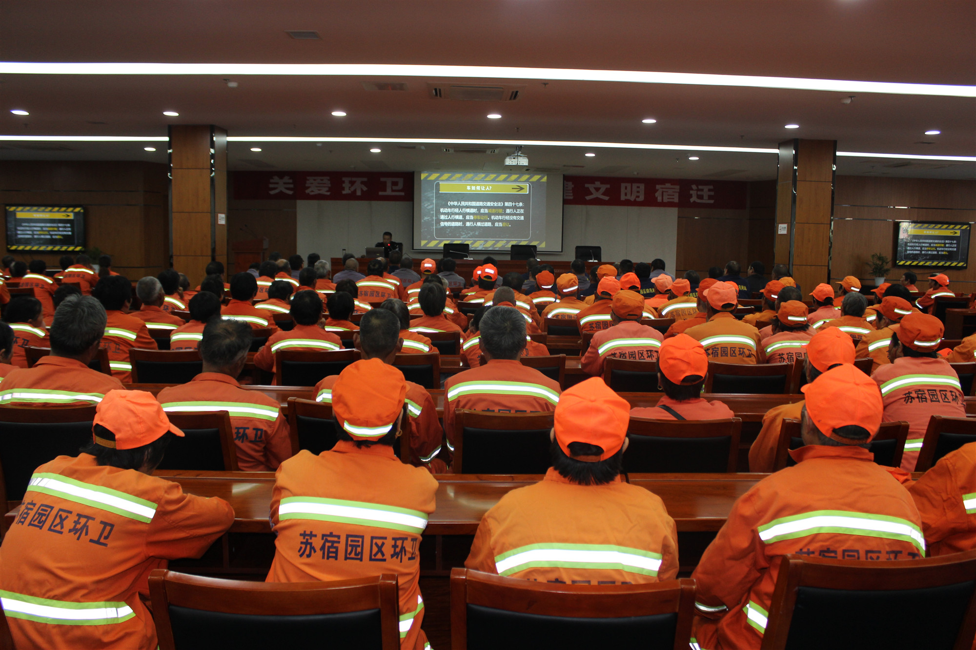 10月24日14時(shí)30分,園區(qū)邀請(qǐng)市交警大隊(duì)劉強(qiáng)警官為全體環(huán)衛(wèi)工人講了一堂專項(xiàng)交通安全知識(shí)講座,通過案例和理論相結(jié)合的授課,全面提高了環(huán)衛(wèi)工人的交通安全意識(shí)。安全專題講座后,還組織所有環(huán)衛(wèi)工人觀看了愛國題材電影《周恩來萬隆之行》,增強(qiáng)了環(huán)衛(wèi)職工民族自尊心和自豪感,培養(yǎng)了他們的愛國情懷,激發(fā)他們干好環(huán)衛(wèi)工作,為建設(shè)文明宿遷添磚加瓦。