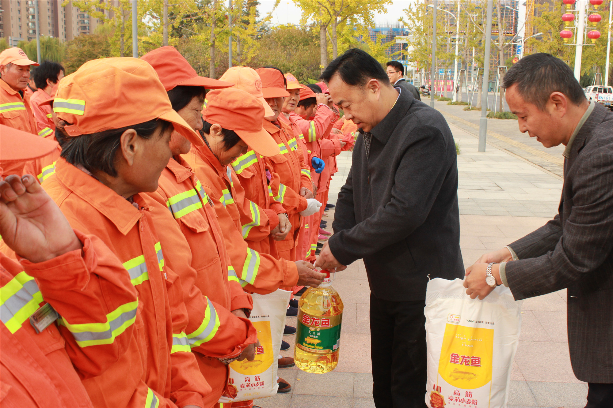 10月26日8時(shí)30分,園區(qū)黨工委委員、管委會(huì)副主任、規(guī)劃建設(shè)局局長邢全男帶隊(duì),親切慰問了環(huán)衛(wèi)工人,并向她們送上了節(jié)日的慰問,感謝她們?yōu)閳@區(qū)環(huán)境衛(wèi)生作出了貢獻(xiàn),并向她們發(fā)放了慰問品。