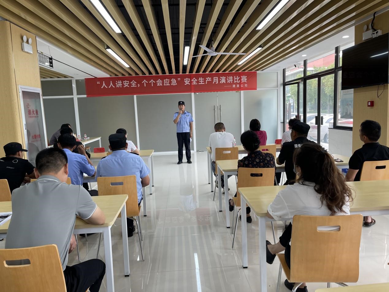 今年6月是第22個(gè)全國“安全生產(chǎn)月”,為進(jìn)一步推動(dòng)安全文化建設(shè),提高廣大員工安全意識,營造安全和諧的生產(chǎn)環(huán)境和安全文化氛圍,6月16日,建發(fā)公司組織安保單位開展了“人人講安全,個(gè)個(gè)會(huì)應(yīng)急”主題演講比賽。