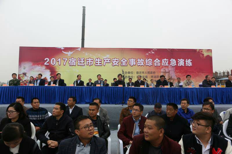 10月17日上午10時(shí),2017宿遷市生產(chǎn)安全事故綜合應(yīng)急救援演練活動在宿遷生態(tài)化工科技產(chǎn)業(yè)園隆重舉行。此次活動由宿遷市人民政府主辦,市安監(jiān)局、市消防支隊(duì)、市應(yīng)急辦、宿豫區(qū)人民政府承辦。省安監(jiān)局副局長趙啟鳳,省政府總值班室副主任薛廣建,市委副書記、市長王天琦,現(xiàn)場觀摩演練。市直有關(guān)單位,以及各縣、區(qū),市各開發(fā)區(qū)、新區(qū)、園區(qū)相關(guān)負(fù)責(zé)人現(xiàn)場觀摩演練。
