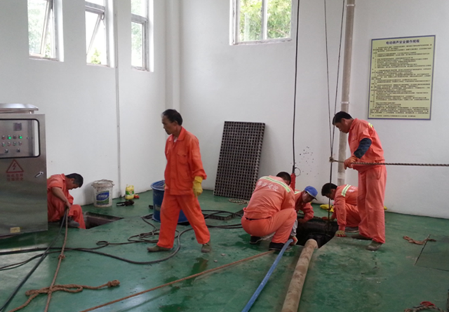 本次維護重點工作是泵站清淤及潛水泵檢查維護。經(jīng)過長期運行,污水泵室及管道內(nèi)積聚了大量污泥、雜物,造成淤積,影響污水泵的正常運行。為了確保污水正常流入泵室,每半年將組織清淤一次。同時,對3臺潛水泵進行檢查,補充黃油,確保3臺泵都能正常運行。