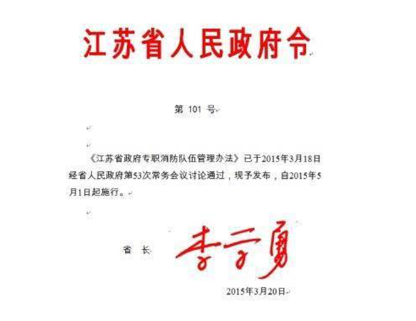 近日,江蘇省省長李學(xué)勇主持召開省政府第53次常務(wù)會(huì)議,審議通過了《政府專職消防隊(duì)伍管理辦法》(以下簡稱《辦法》)。自2015年5月1日起正式施行。